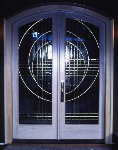 Although this picture does not showcase the glass samples with clarity this entry door was a beauty, combining beveled glass, textured clear glass and brass came. |