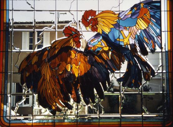 Fighting cocks panel with custom beveling 5 x 5 ft |
